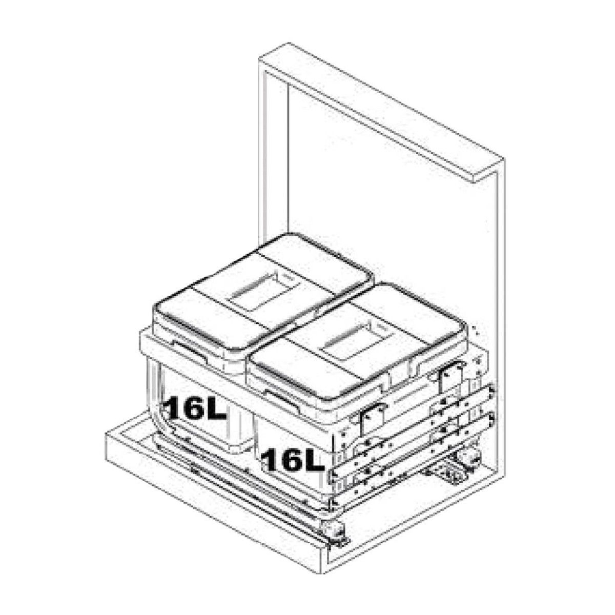 Afvalsysteem voor montage op de kastbodem en de mogelijkheid voor aan het front te monteren.