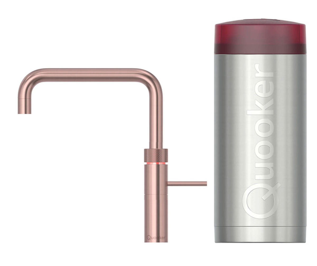 De Quooker COMBI Fusion Square Goud is de alles uit één keukenkraan van Quooker. Net als de Quooker Flex is dit een 3 in 1 kraan. Warm, koud én kokend water uit één kraan! Naast warm, koud en 100°C kokend water kan de Flex ook gekoeld en bruisend water geven, als je hem combineert met de Quooker CUBE. Tevens is de Quooker Fusion ook leverbaar in de kleuren Chroom, RVS, Zwart, Messing Patina, Gunmetal en Rosé Koper.